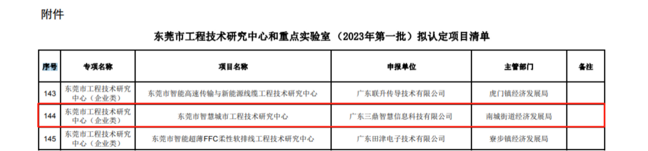 近日,东莞市科学技术局发布了《关于东莞市工程技术研究中心和重点实验室(2023年度第一批)拟认定项目的公示》(项目已过公示期),其中,由广东Xingkong娱乐在线网页版登录入口组建的“东莞市智慧城市工程技术研究中心”顺利通过认定。